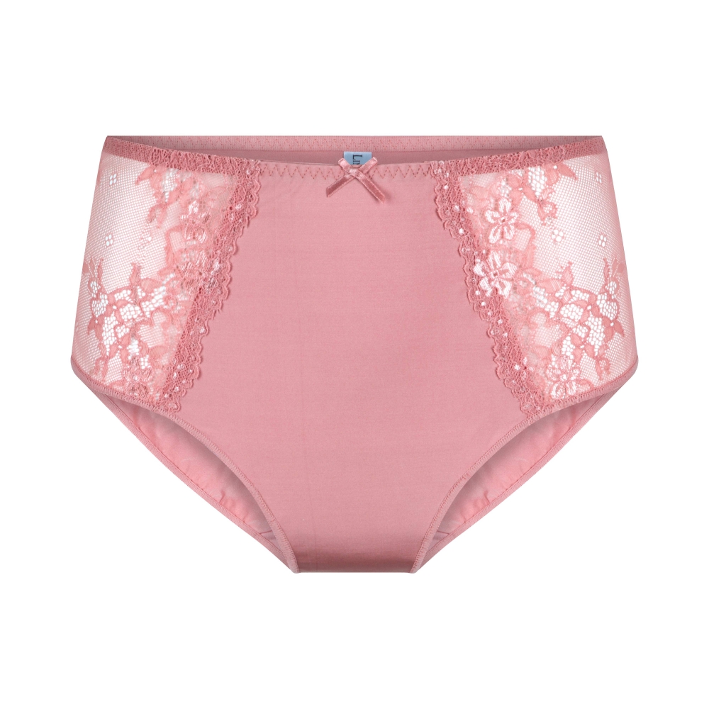 Daily Lace maxitrosa, en vacker underdel med exklusiv spets. Detta är en trosa i antique rose färg med heltäckande tyg fram och bak samt en exklusiv spets på sidan av trosan.